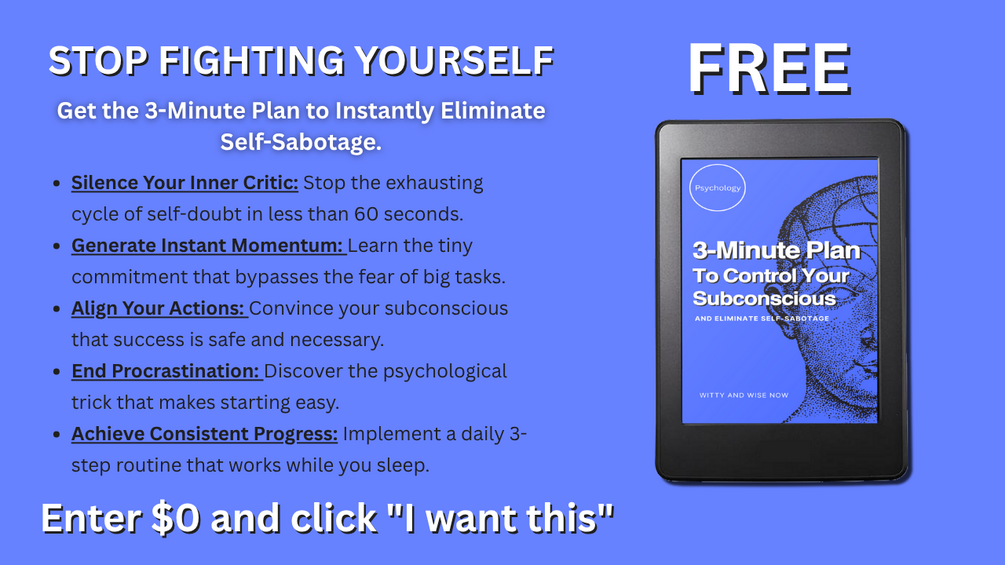 Stop fighting and start aligning. Download the free 3-Minute Plan to Control Your Subconscious and Eliminate Self-Sabotage. This succinct guide gives you the exact 180-second, three-step daily routine to bypass conscious effort, re-frame the beliefs driving self-sabotage, and immediately generate the momentum you need. Stop the internal war and start making consistent progress today.