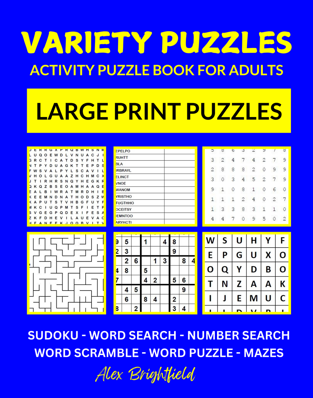 A Collection of Sudoku, Word Search, Number Search, Word Scramble, Word Puzzles, and Mazes for Fun and Mental Stimulation.